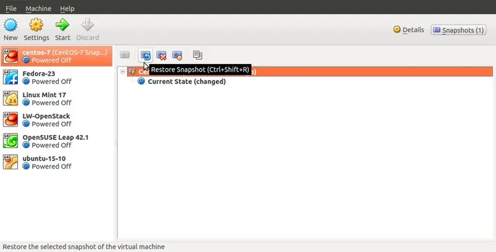 To restore, select the virtual machine, click on Snapshots then Restore Snapshot option.