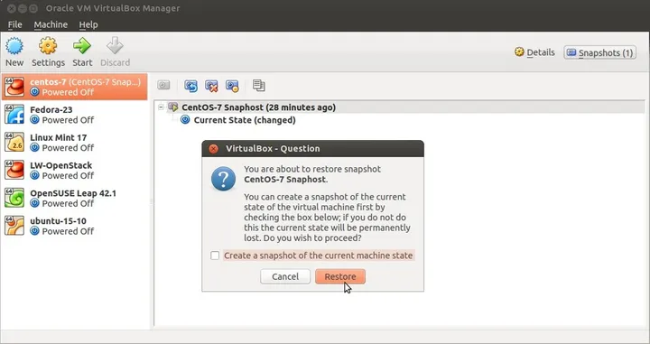 Then click on Restore Snapshot.